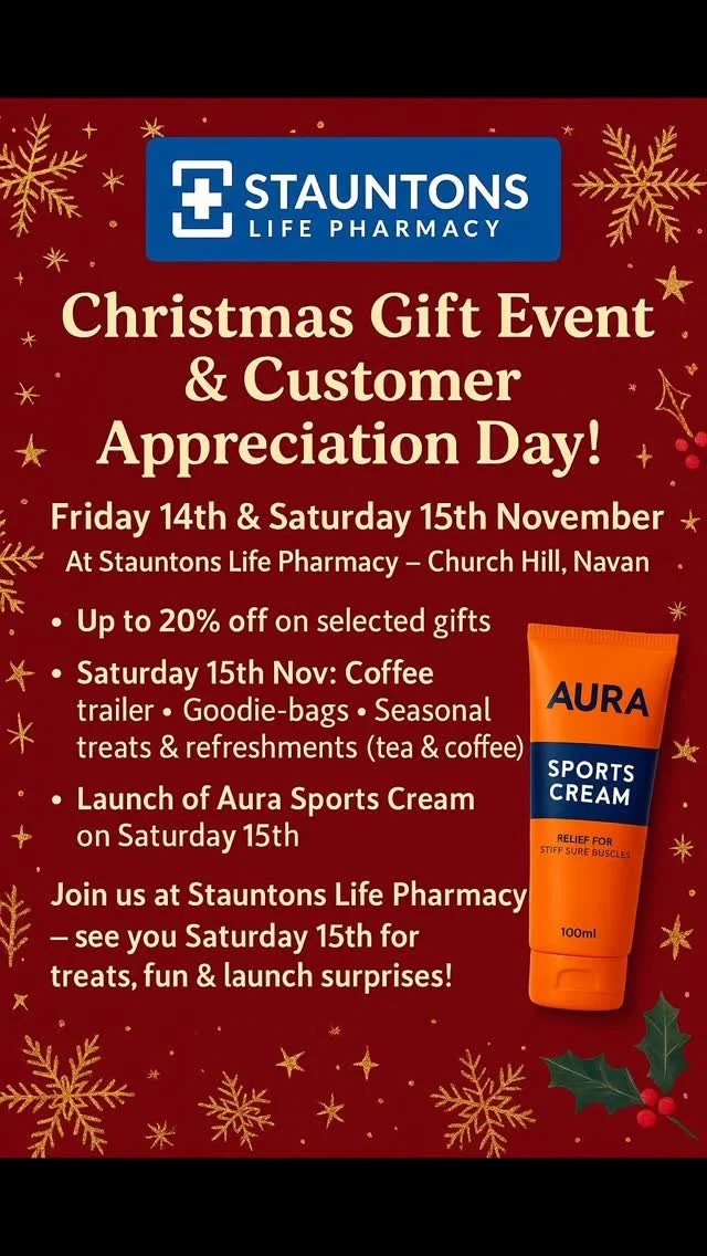 Welcome to Staunton’s Life Pharmacy CHRISTMAS OPENING HOURS Church Hill Navan Johnstown Village SHOP ONLINE CELEBRATING 30 YEARS